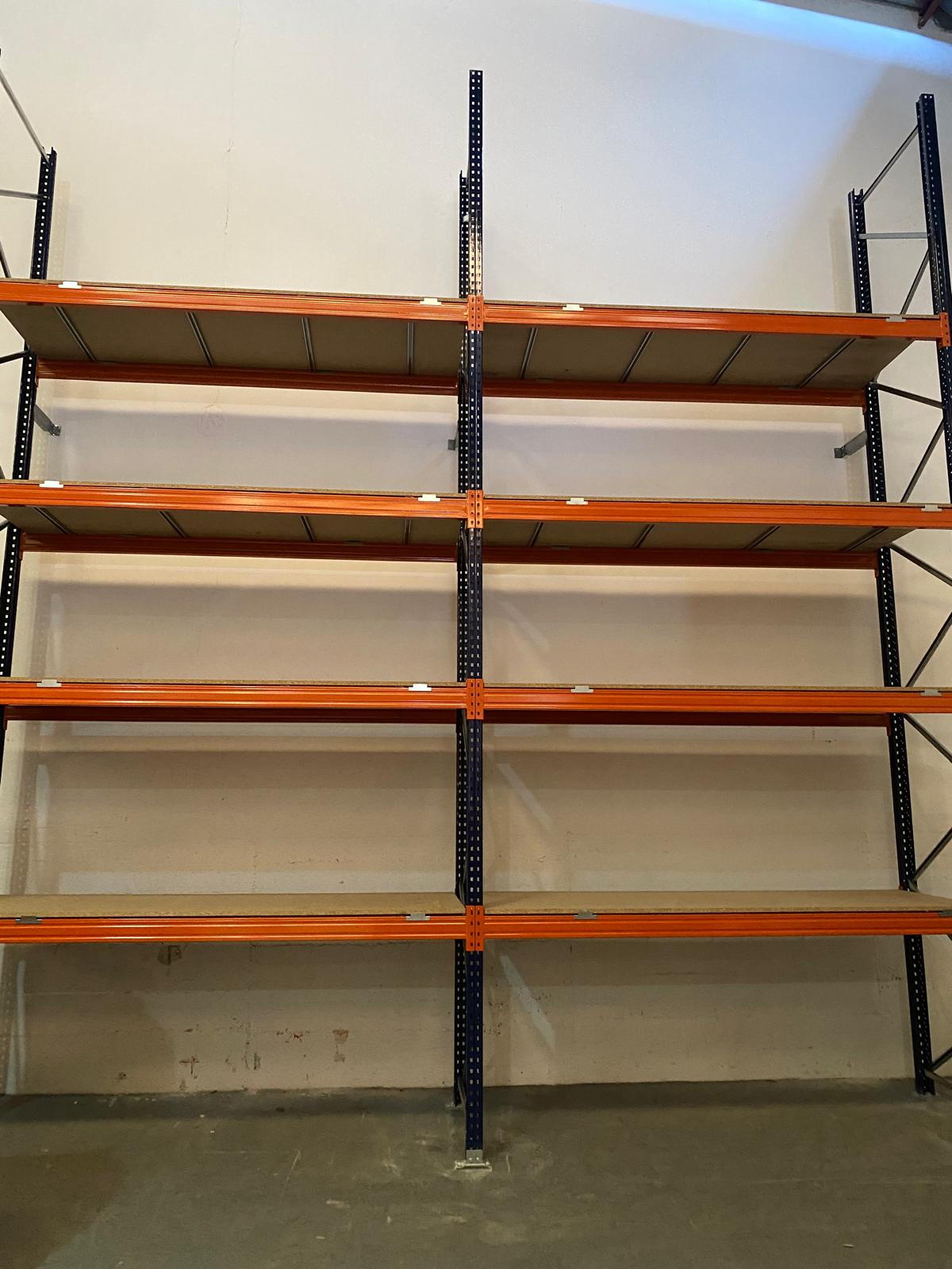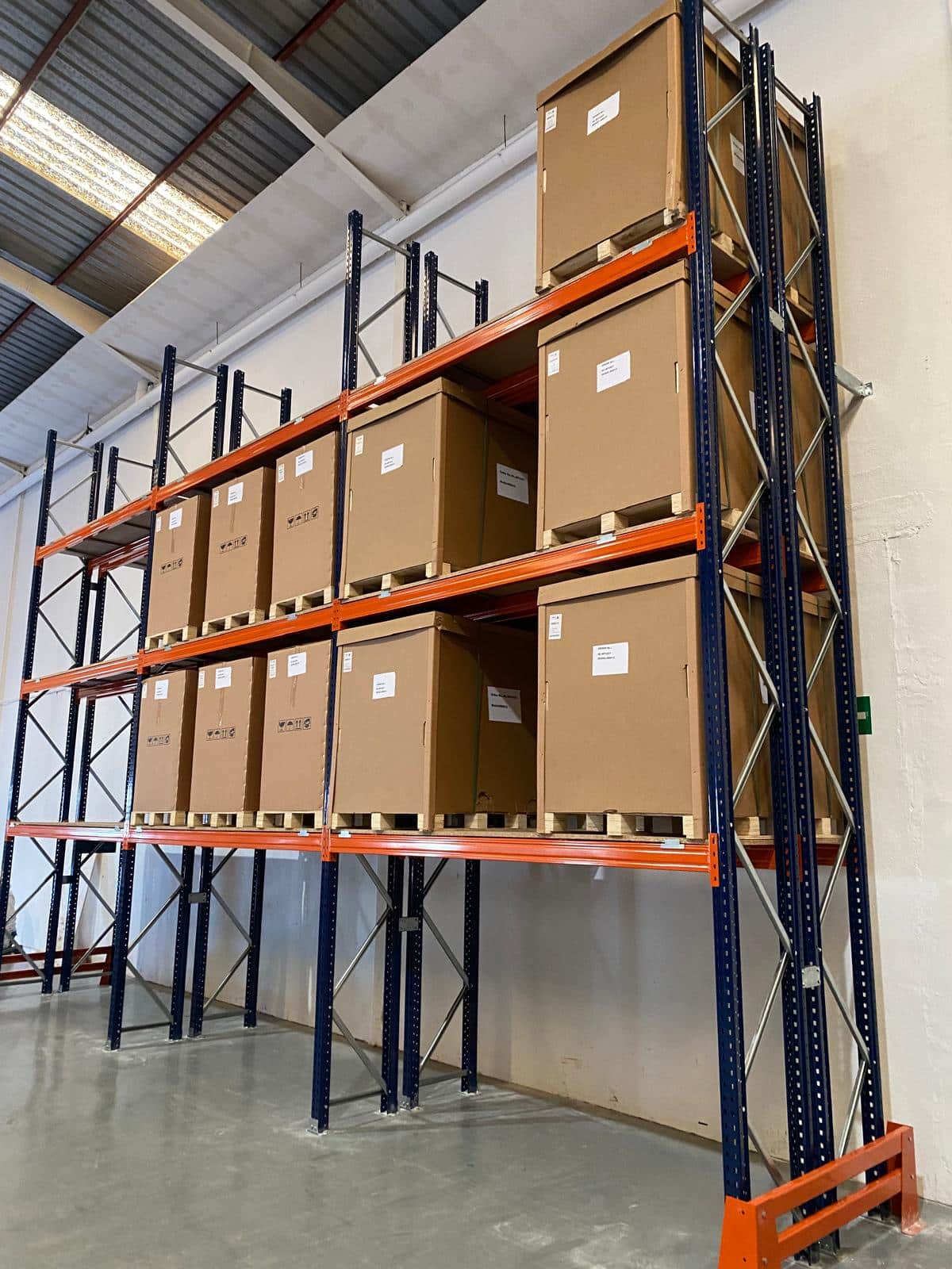 – 1 estantería con simple acceso compuesta por 2 módulos de 2.700mm de largo, 1.000mm de fondo y una altura total de 3.000mm, se ha realizado una distribución de 4 niveles más suelo