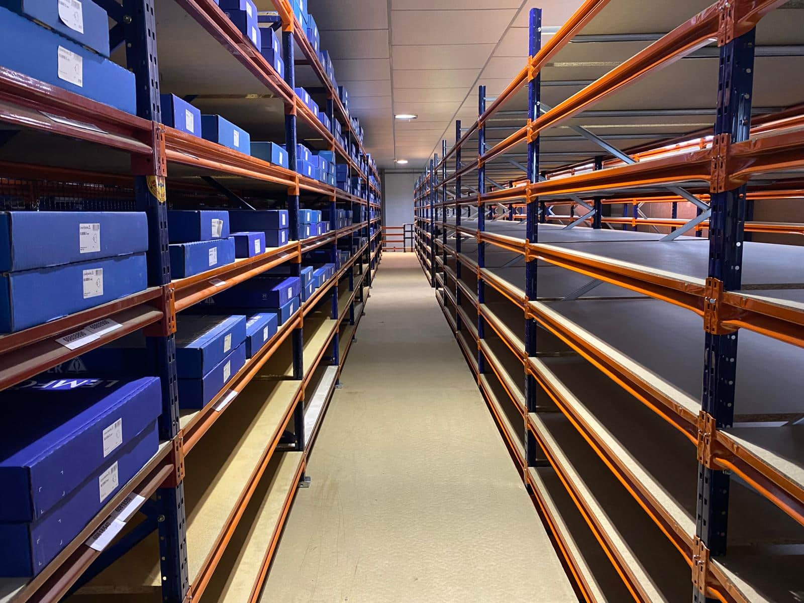 La parte de debajo de la entreplanta está compuesta por 2 estanterías picking de diferentes medidas: