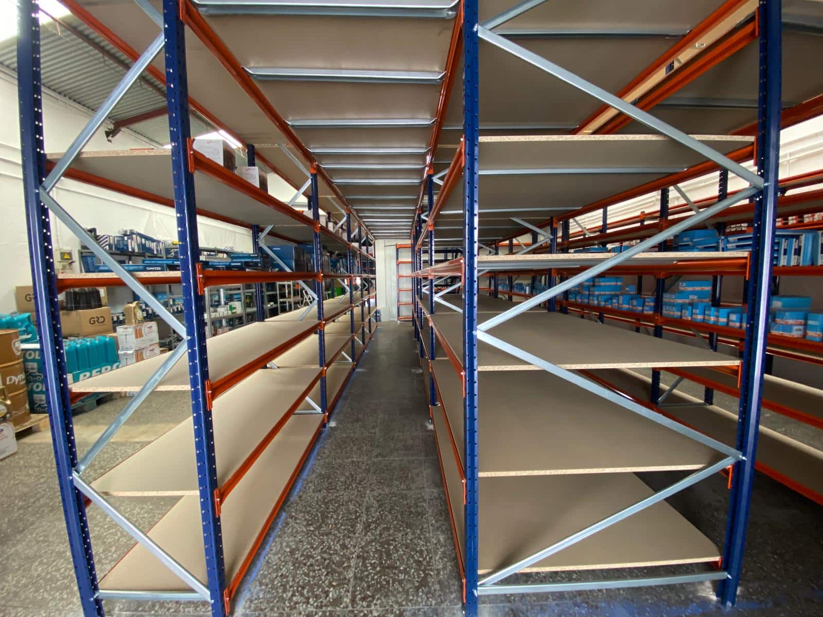 La empresa ha decidido aprovechar el espacio útil de su almacén instalando en una zona estanterías de picking para así conseguir una eficiente organización de sus artículos, así como un acceso fácil y directo a ellos.