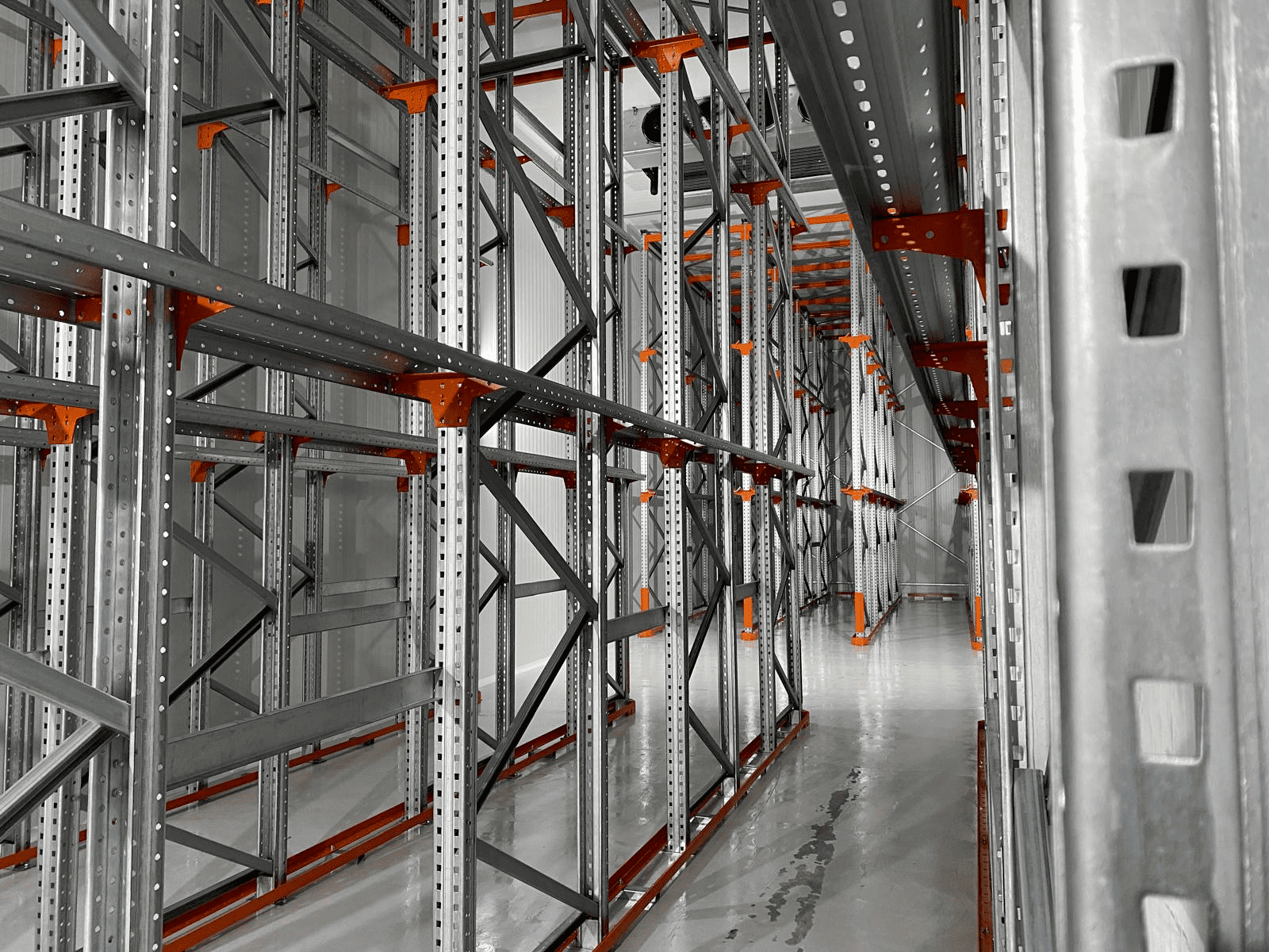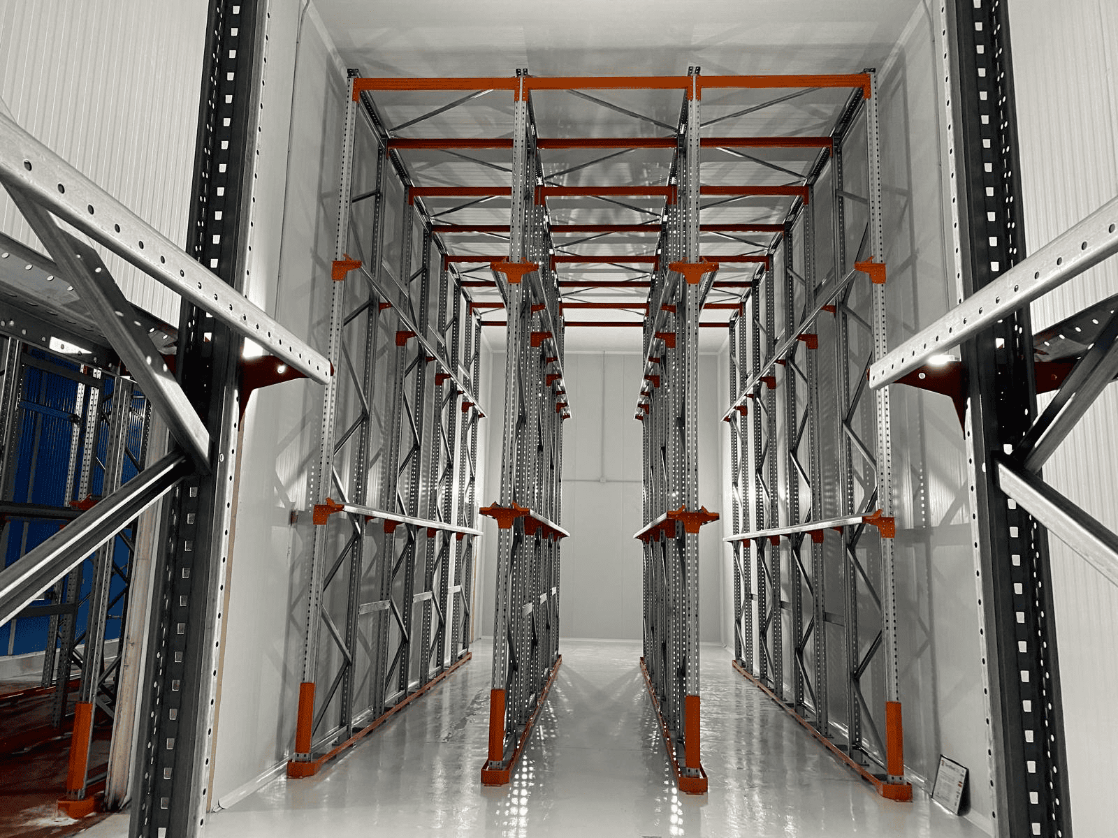 Las estanterías drive in son perfectas para almacenar grandes cantidades de productos con la misma referencia, como alimentos congelados o productos cárnicos, ya que permiten aprovechar de manera óptima tanto la superficie como la altura del almacén al eliminar los pasillos entre estanterías.
